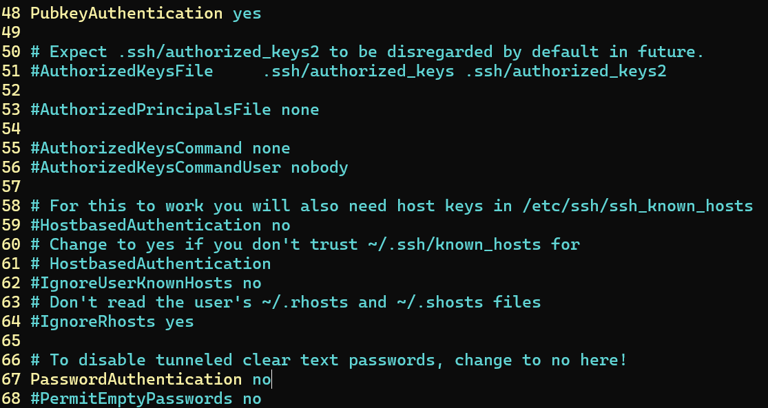 PasswordAuthentication no