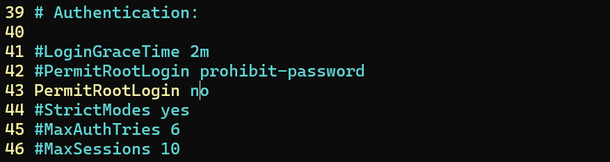 PermitRootLogin no # root 로그인 원천 봉쇄.