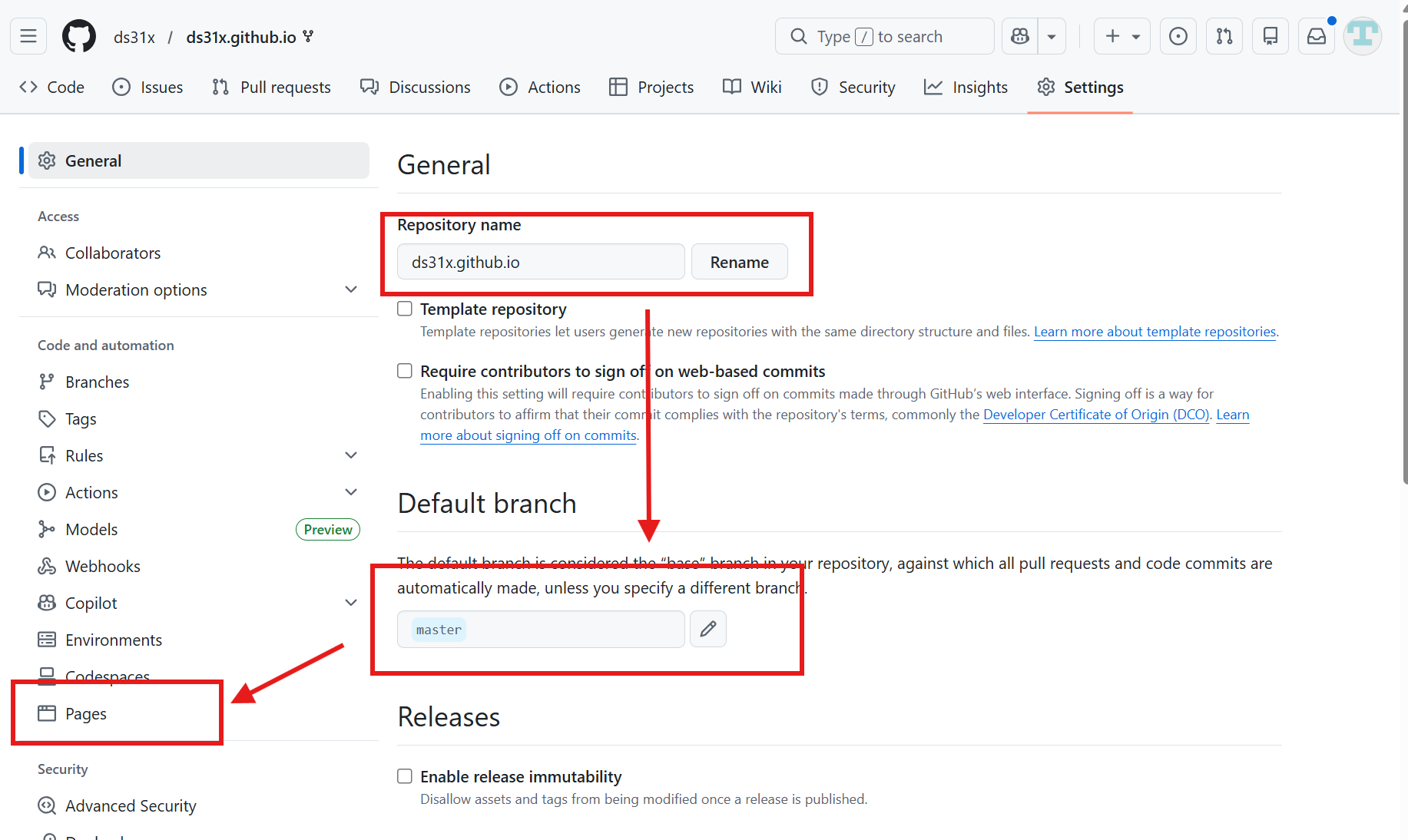 이후 Pages를 클릭한다