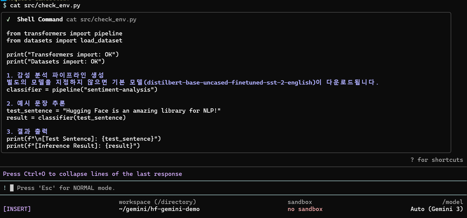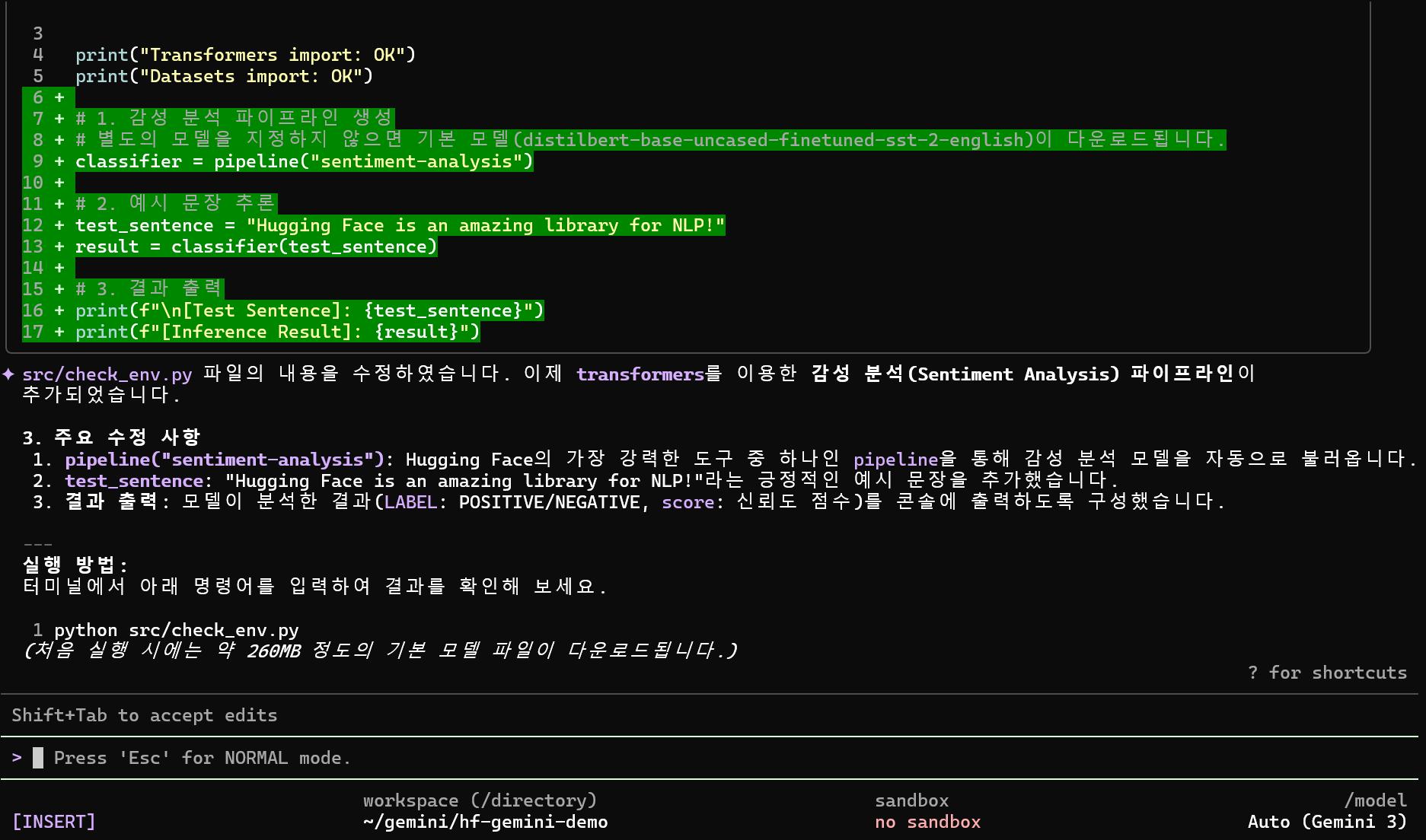 그러므로 Gemini 에게 실제 파일 수정을 지시.