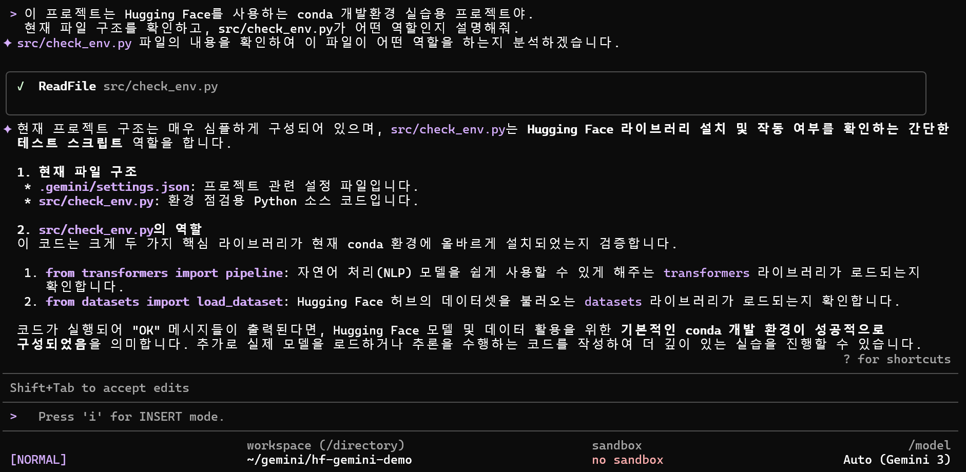 - 설정 변경시 같은 프로젝트 디렉토리에서 gemini를 실행하여 다시 불러와야 적용됨.