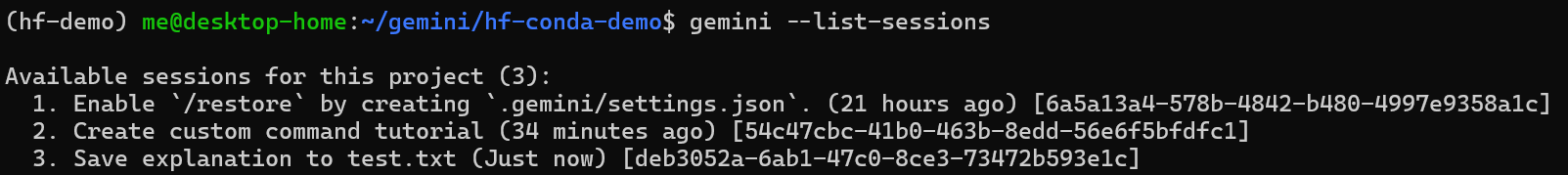 - Gemini CLI를 재시작 시킨 경우 이 저장된 과거의 converation chechpoint를 통해 과거의 session을 이어나갈 수 있음.