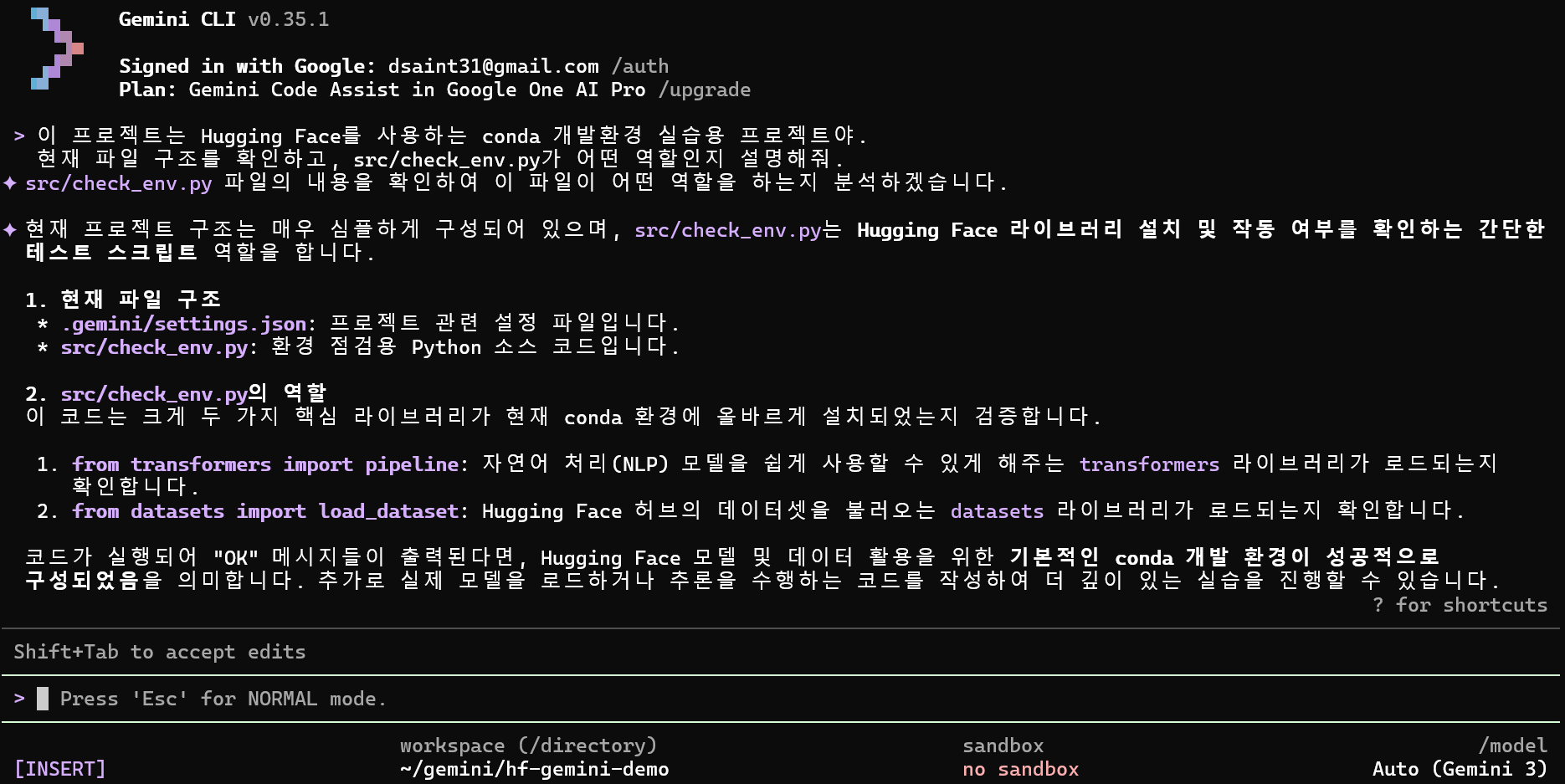 이제 반드시 프로젝트 루트에서 Gemini CLI를 실행함.