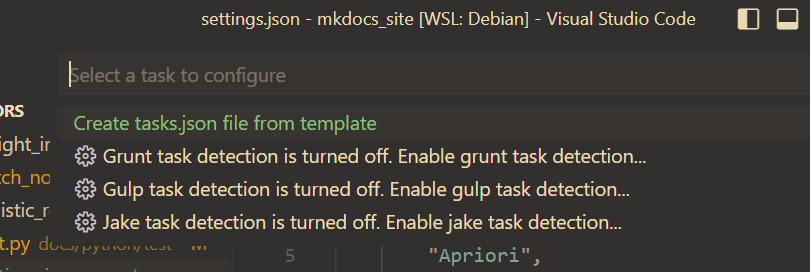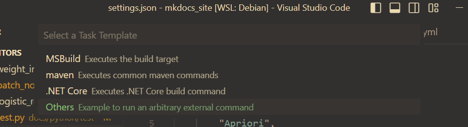 tasks.json 파일이 template로부터 생성되고 editing할 수 있게 된다.