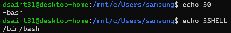 가장 쉬운 방법은 환경변수 SHELL을 확인하는 것임.