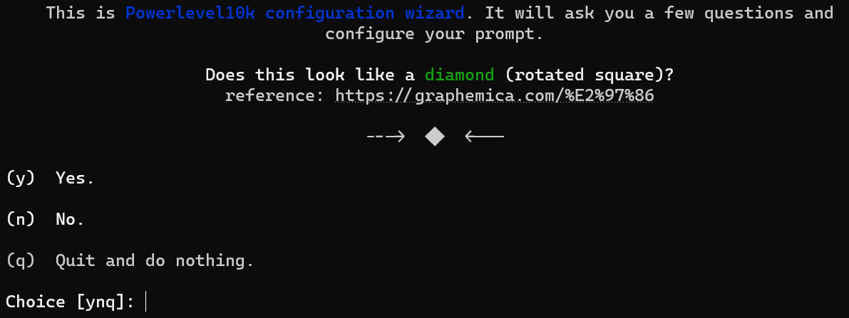 이후 다음 명령어를 수행하면 powerlevel10k 테마 설정이 시작됨.