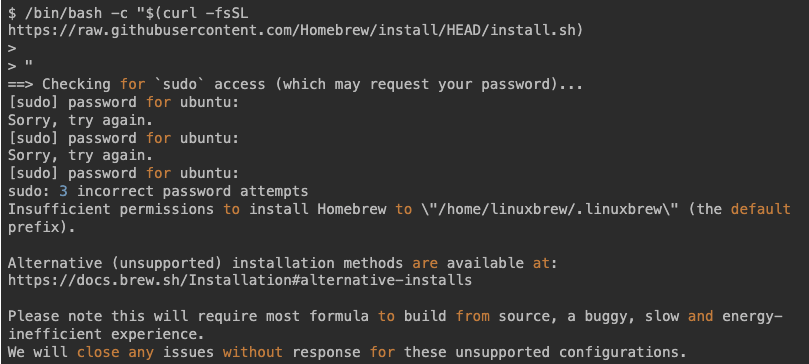 Insufficient permissions to install Homebrew to \"/home/linuxbrew/.linuxbrew\" (the default prefix).